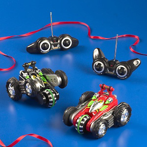 Your little racers will get big kicks out of this Shoe-Shaped Radio Controlled Squall Stunt Car. The silly shapes and flashing lights of this RC twosome ensures hours of fun for the young and young-at-heart alike. RC Squall Stunt Car Includes: