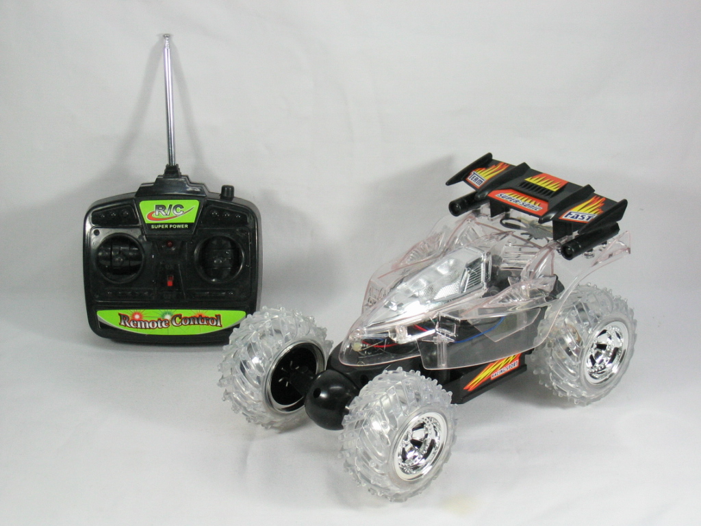 Put the pedal to the metal with our totally awesome Super Twister Stunt Car. Complete with an electrifying array of multicolor flashing lights and 360 degree rotating front wheels, this daring and dynamic vehicle performs multiple flipping stunts with blazing speed. Turbo 360 degree front axle spins and super wheelies are at your fingertips with the easy-to-maneuver remote control. The long-lasting battery allows you to race friends and family for hours of non-stop spinning action. See you on the flip side! Other details of our Super Twister Stunt Car include: